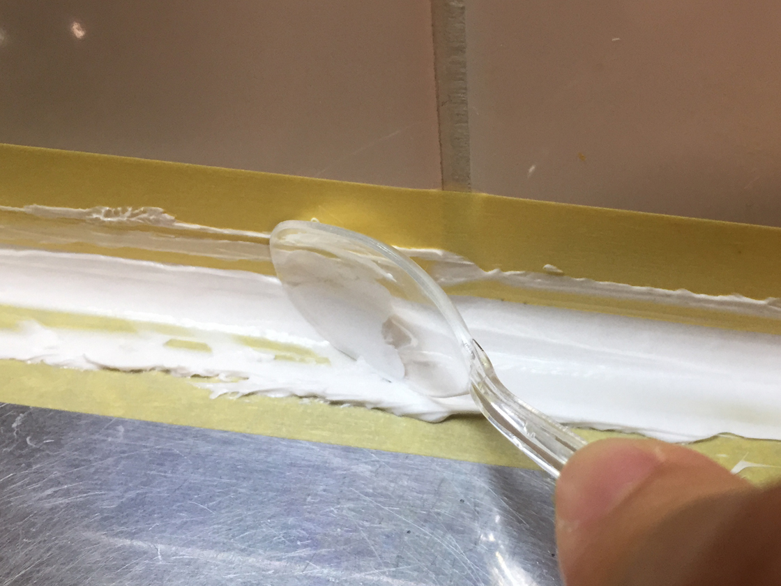 防カビ剤入、塗装不可。ヘラ・マスキングテープ付き。