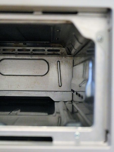 上の写真が魚焼きグリル庫内のビフォーの状態。グリルの奥が油汚れや焦げでこんなに汚れています。