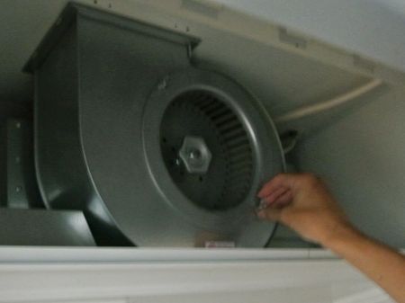 換気扇の掃除を始めるにあたり、まず換気扇の電源を切ります。さらに、万が一の時のために、キッチン全体のブレーカーをOFFにします。 2)フィルターをはずし、ネジをはずします