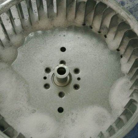 さらに汚れを落ちやすくするために、泡の洗浄剤をつけて時間を置きます。