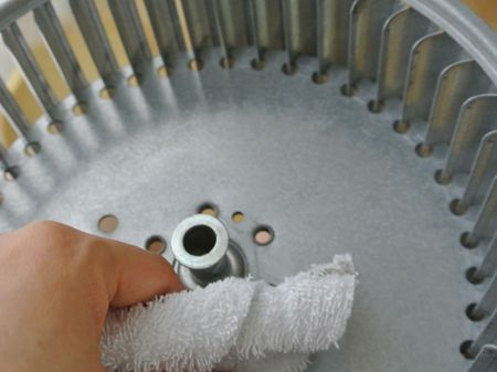 フィルターをはずすと中はこのようになっています。さらに、ネジを回してはずします。中を見てみると、油とほこりが結構ついています。 3)ドラムを取り出します