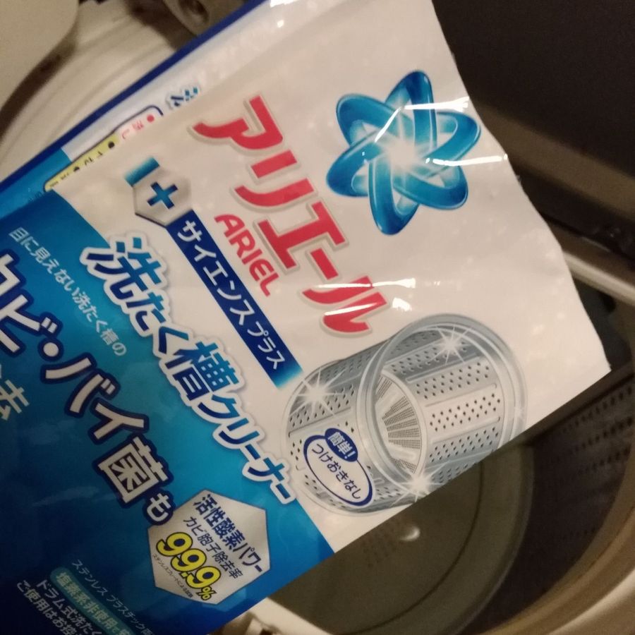 洗濯機の汚れ・カビに効果のある漂白剤には酸素系と塩素系があり、酸素系漂白剤→こびりついた汚れをはがす“汚れに効果的”塩素系漂白剤→汚れ、カビを分解する“殺菌除菌効果が高い”なのだそう。しかも、①酸素系クリーナー→②塩素系漂白剤の順で洗浄をとのアドバイスが…。そこでさっそくW使いに挑戦してみることにしました!ただし、その前に槽乾燥をすると汚れの剥がれがよい! という話をうかがい、まずは槽乾燥。