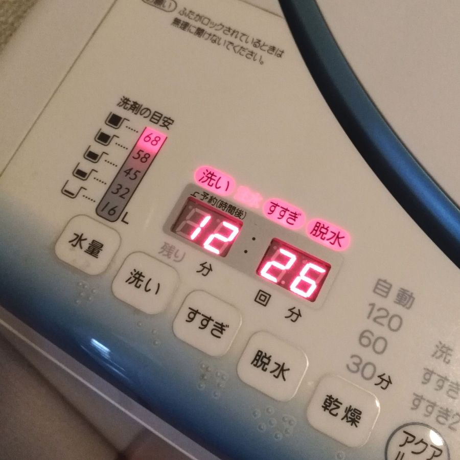 高水位までお湯を足して少し運転、放置。その後、洗い→脱水まで通常運転します。