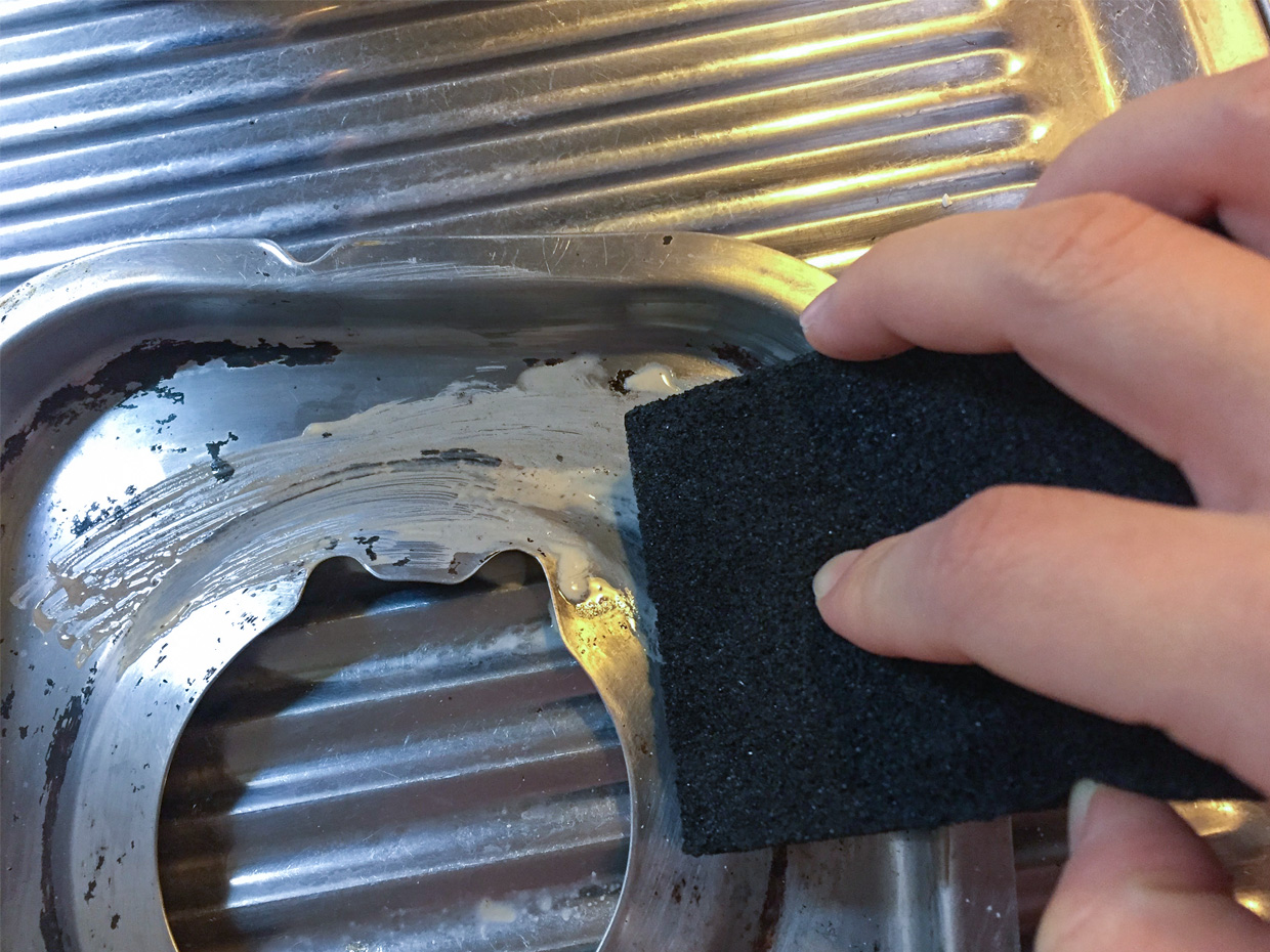 もちろん重曹などいろいろ方法はありますが、何せ手間がかかる。ここも「さびとりつや之助」と「スポンジヤスリ」で一磨き。