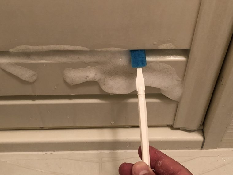 お風呂のお掃除をしていて、ついつい後回しにしてしまうドアの通気口。歯ブラシや布を巻いた割りばしで掃除していましたが奥までは掃除できませんでした。そこで活躍するのが、「すき間スティック」。非常に便利です。ぴったりフィットします。