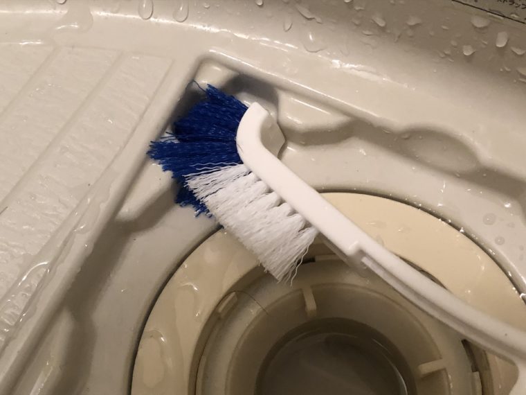 水だけでも汚れを落とすことができますが、洗剤を併用することでより一層汚れを落とすごとができます。結構汚れやカビが出てきました。