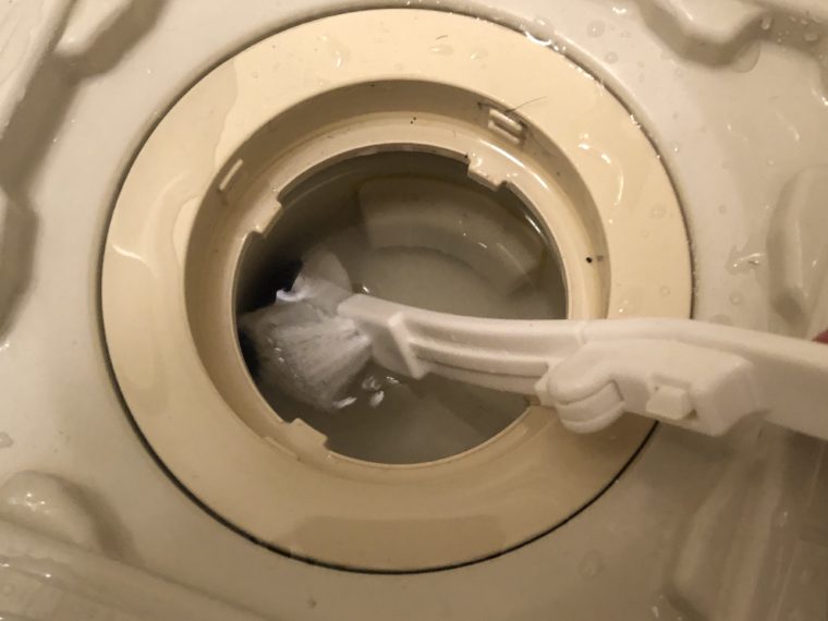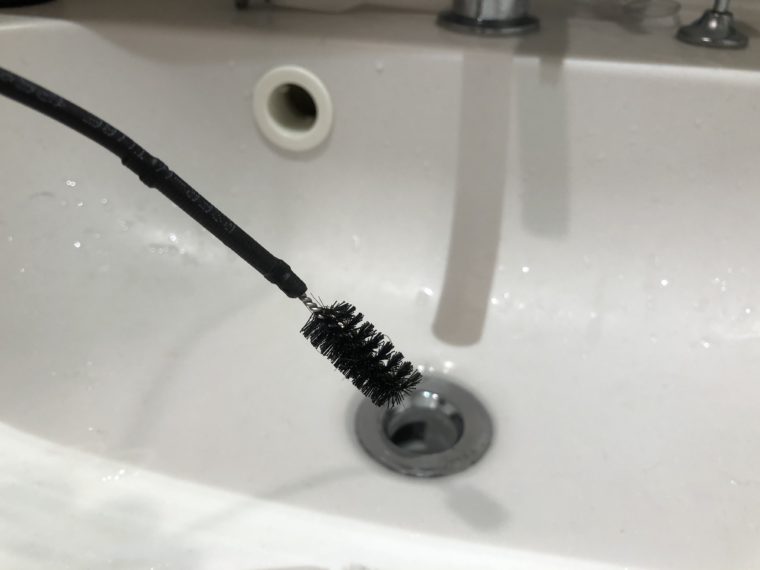 このブラシは折りたたみ式で伸ばすと30㎝くらいになります。排水口の奥に手を入れなくてもラクラクお掃除ができ、そんなに力を入れずにしっかり汚れを取ってくれます。