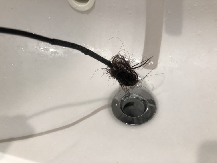 ここまですき間そうじをしているとさらに掃除したくなるのはなんででしょう。そこで、おまけとして次に使ったのはこちら!ウニャウニャしているこの道具、「髪の毛ごっそりクリーナー」です。水道の水が流れにくくなることありますよね。以前は排水口の中で何かが詰まっているのかと思い、パイプ用液体洗剤を入れてみても詰まりがほんとになくなったか不安に思っていました。ですが今回のお掃除ではこのクリーナーを見つけ、パイプの中を確かめるためにもこのアイテムを買ってしまいました。試してみると、、、