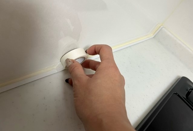 さっそくカビ取り剤をかけていくわけですが、おすすめは、スポンジではなくホームセンターなどで売っているハケを使うこと。スプレータイプは液だれしやすくて、しかも広がりにくいですよね。でも、ハケを使えば、少量でも伸ばしやすく、細かい箇所にも塗りやすいんです。