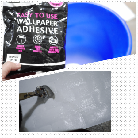 賃貸にもOKな、貼ってはがせる専用糊(スーパーフレスコイージー)をぬるま湯で溶かして糊を作ります。こちらは大体1000円以下で購入できます。そして刷毛やローラーで、壁紙の裏にまんべんなく塗って、壁に貼り付けましょう。
