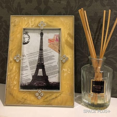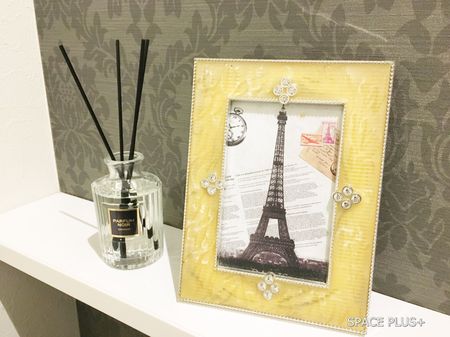 装飾は少なめにした方が、お掃除の手間がかかりません。ワンポイントでも素敵に目立つ飾りをチョイスしましょう。おススメの例としては、ポイントがきらりと光るフォトフレーム。そこにモノトーンの絵や写真を飾ると、シックで大人っぽい雰囲気になりますよ。こちらのエッフェル塔写真は、ネットで白黒印刷したもの。おうちで手軽にできちゃいます。