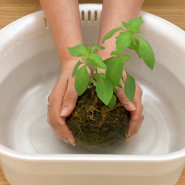 苔玉が乾いて、軽くなったら水やりのタイミングです。バケツなどに水を溜め、苔玉をドボンと浸します。気泡が出なくなったら引き揚げましょう。 霧吹きで水やりする場合、しっかり内部まで水が浸透していることを確認しましょう。
