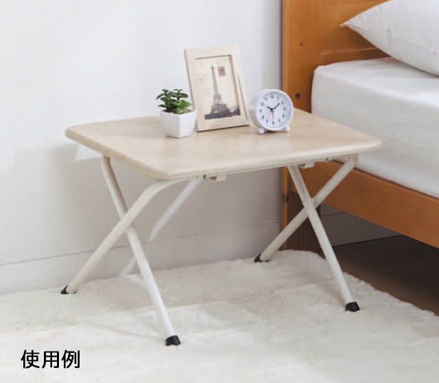 目覚まし時計・電気スタンドなどベッド周りの小物を置くのにオススメ!折りたたみ式なので使わないときはコンパクトに収納できます♪サイズ:約幅50×奥行き44×高さ35cmカラー:ナチュラル×アイボリー