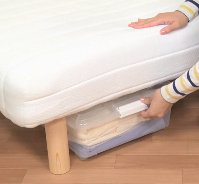 ベッド下のスペースには収納ボックスなどが入るので、本やCDなどの収納にピッタリ。お部屋の整理整頓にもオススメです。
