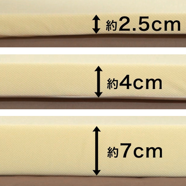 選べる厚さは2.5cm・4cm・7cmの3種類。2.5cm・4cmは現在お使いの敷布団やマットレスの上に重ねて、7cmはそのまま1枚でもお使いいただけます。