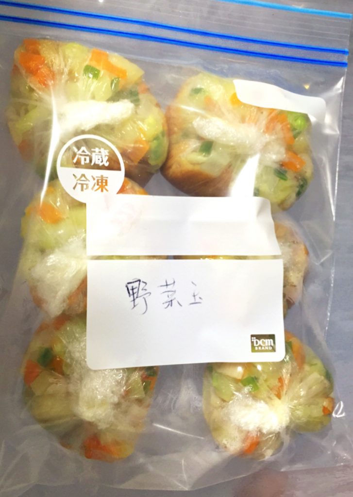 包んだものは冷凍庫に入れて保存。賞味期限は2週間らしい。今回は冷凍保存バッグに入れました。風味を保つことができ、気持ち清潔そう。