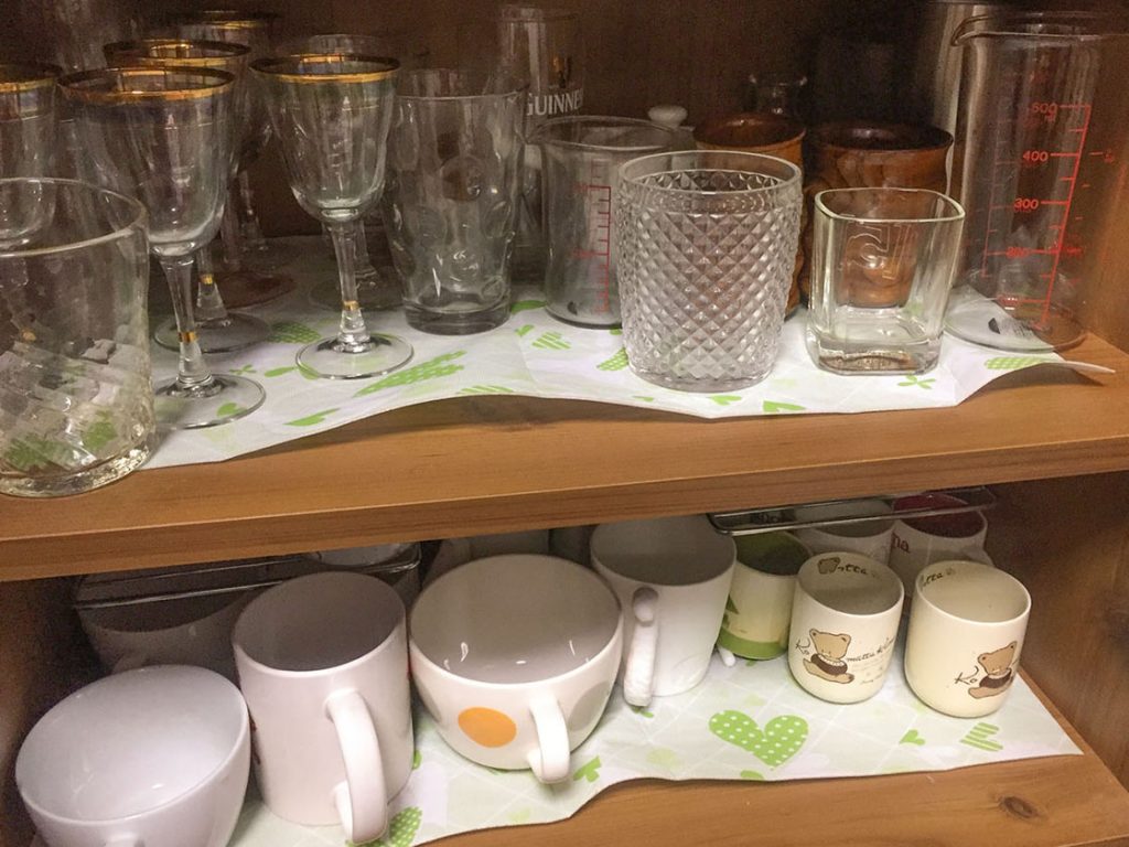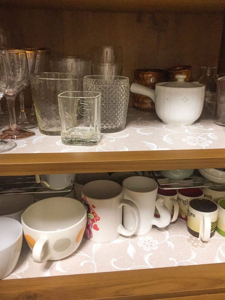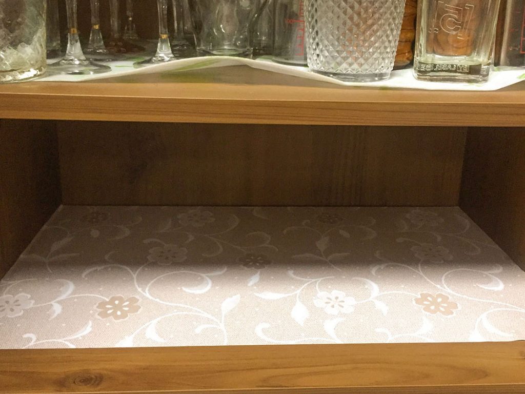 そこで、ピタッと吸着してずれないテーブルクロスを食器棚で使うことにしました。