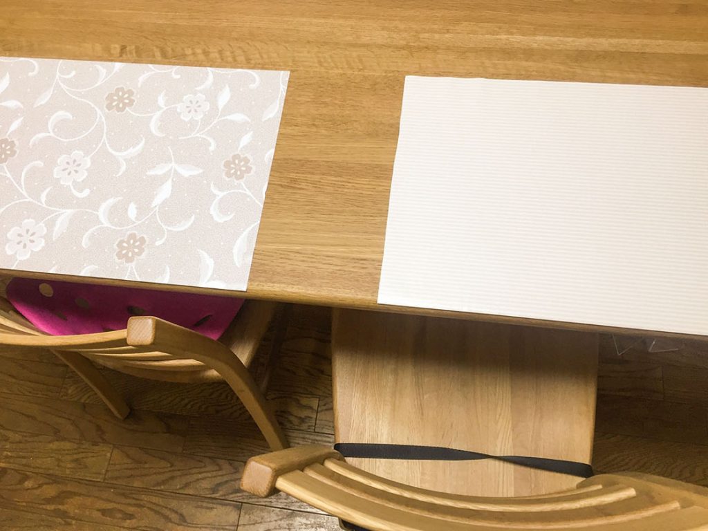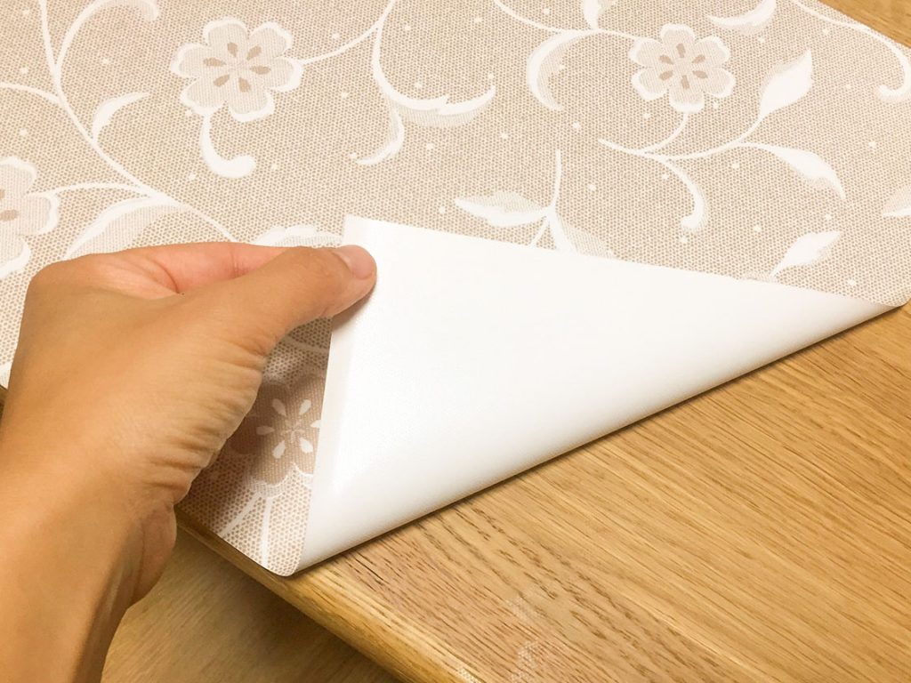 ちなみに、うちではこの吸着テーブルクロスをランチョンマット替わりに使っています。