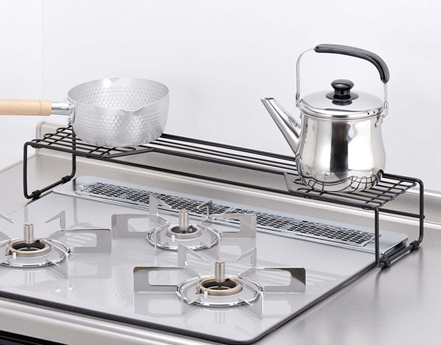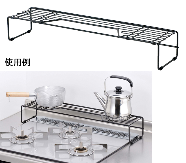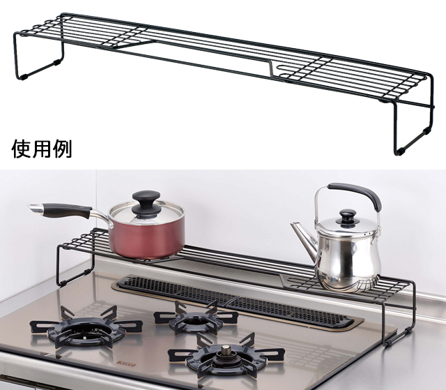 コンロの奥のスペースを有効活用!鍋やケトルなどの一時置きスペースに最適です。 サイズ:約幅64.5×奥行15×高さ28cm