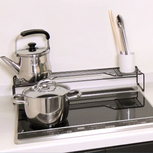 調理中のお鍋やヤカンなどの一時置きに便利!よく使う調理器具を置いておくのにも利用できます。※熱いままの鍋を置かないでください。コーティングが劣化する恐れがあります。