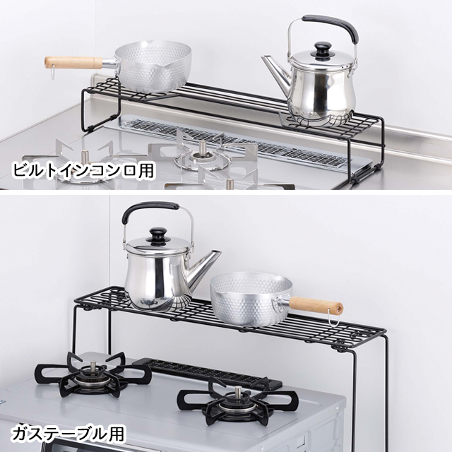 コンロ周りをスッキリ整理!コンロ奥の隙間を活用して調理道具などが置ける、便利なラックです。ビルトインコンロ用・ガステーブル用があり、ご自宅のコンロに合わせて選べます♪