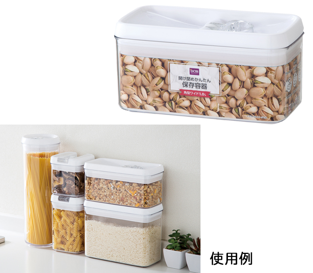 DCMブランド/開け閉め簡単保存容器 角形ワイド 1.0L