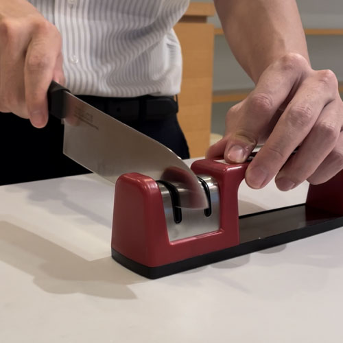 包丁を長持ちさせるためには、砥石で真っすぐきれいに研ぐのが良いですが、今すぐに切れ味を良くしたいという時にはシャープナーを使うというように使い分けができればベストですね。