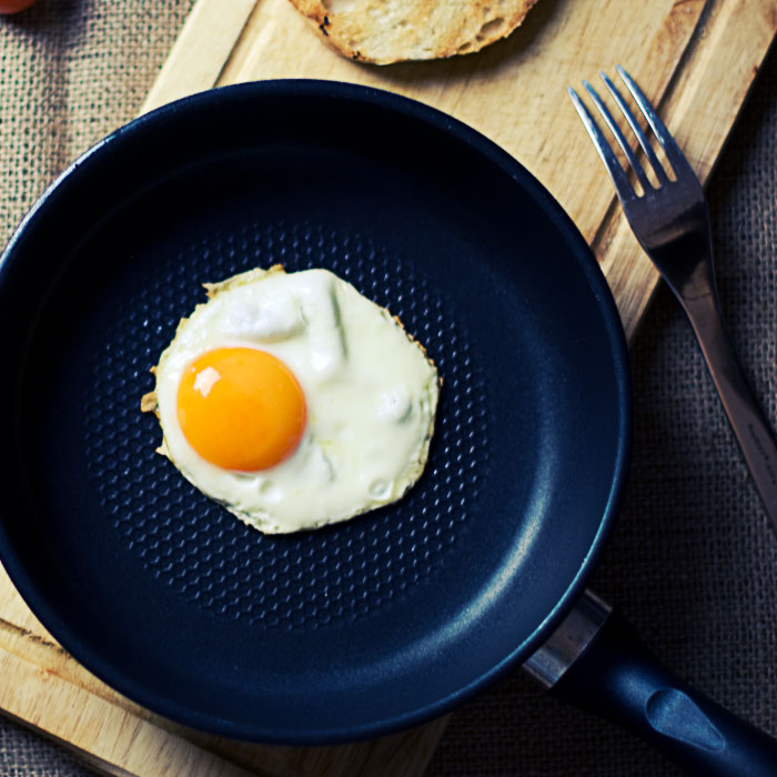 また、フッ素加工フライパンを急に冷やすことも傷みの原因となります。例えば調理後すぐのフライパン、早い方が汚れが落ちやすいから!と水につけたりあてたりするのはやめましょう。温度が冷めてからキッチンペーパー等で汚れを拭きとってから洗うのがおススメです。