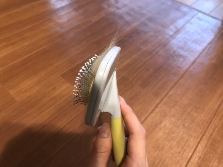 今回使用したブラシも長短の2段ピンでしっかり抜け毛を取り除ける上、長ピンの先端は丸くワンちゃんの皮膚を傷つけない構造になっており安心して使用できました。