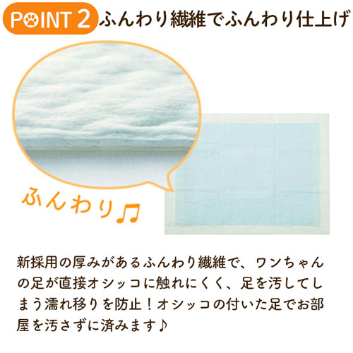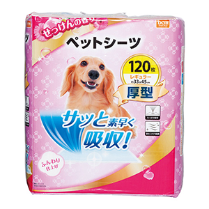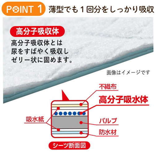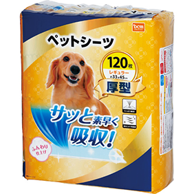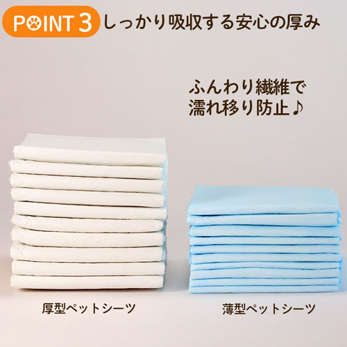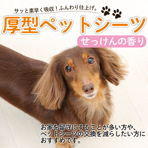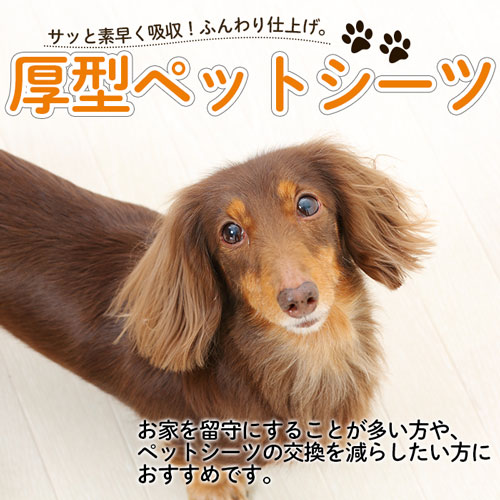 厚型厚型のペットシーツの魅力は吸収力。厚みがあるのでわんちゃんの足への漏れ移りを防止します。
