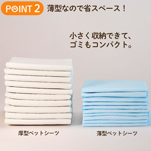 薄型薄型のペットシーツは1枚当たりの値段が厚型と比較して経済的です。こまめに交換したい方におすすめ。
