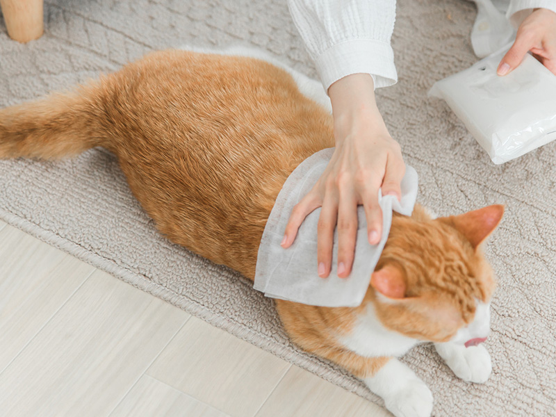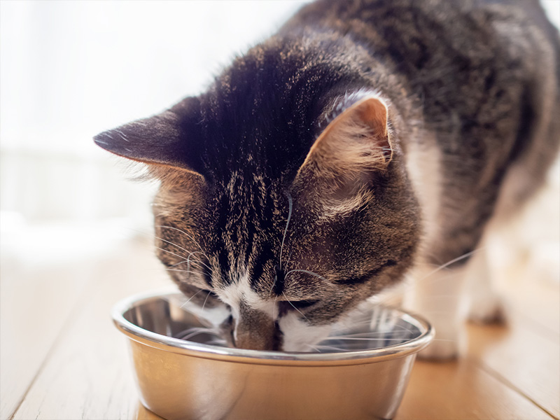 食器類は、お散歩バッグに入れている方もいらっしゃると思います。災害時は、折り畳み式でシリコン素材のものがかさばらずに軽量でおすすめです。カラビナ付きやリュックに付けられるタイプだと、移動中も邪魔にならず運ぶことができます。慣れないもの、見知らぬものは食べないといった習性を見せる猫は多いため、食事は普段食べているものを。ドライのフードは保管がしやすく、ウェットのフードは水分が多いため、水分補給の助けにもなり便が出ないときもおすすめ。水分が多い分、保存がきくパウチタイプにするなど工夫が必要です。普段、療養食を食べている子は特にご注意を。支援物資がきても、その子に合う食事が入っていない可能性が高いため事前の準備が重要です。