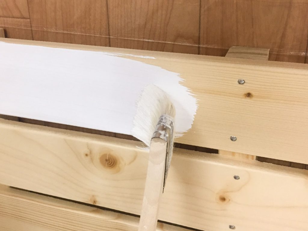構造はシンプル。厚めの木の板をすのことL字に組み合わせて、直立するようにビス止めをする。あっ!その前に、暗い玄関でも映えるように、すのこと木材は事前に白く塗りました。