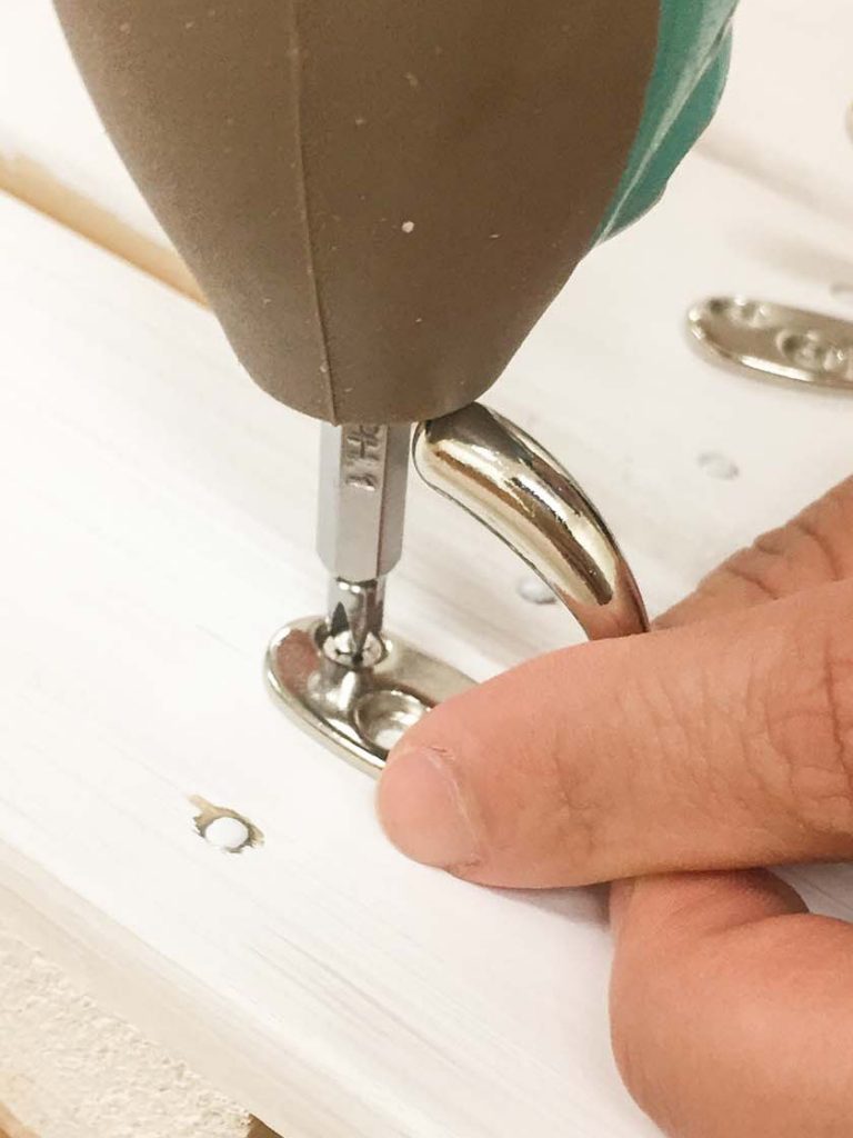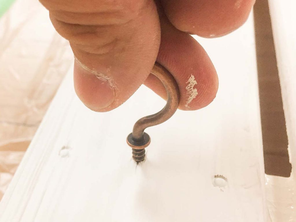 すのこは柔らかいので、ネジフックなら手でも取り付け可能です。