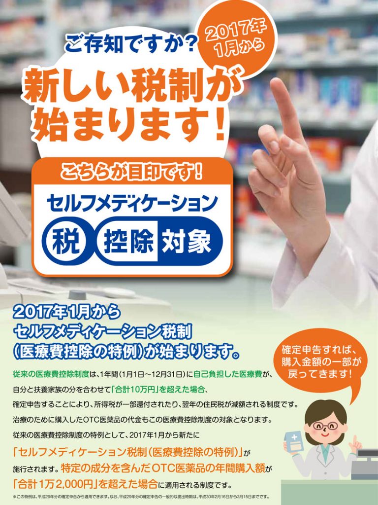 市販OTC薬購入も確定申告できる新しい税制らしい。しかも今年元日から!すごい!もうすでに薬局で風邪薬を一回買っているし。あ、レシートは取っておかなきゃ!