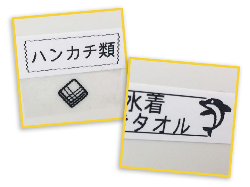ハンカチの場所はハンカチらしい枠で、プール用品はわかりやすいイルカ枠で。