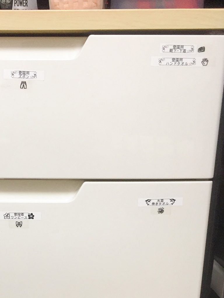 これからもこんな調子で洗濯物をたたんでくれるかな?(≧▽≦) ちなみに、テプラのほかに、マスキングテープでも手軽にラベルが作られます。