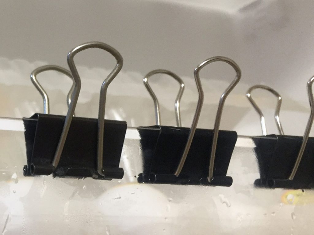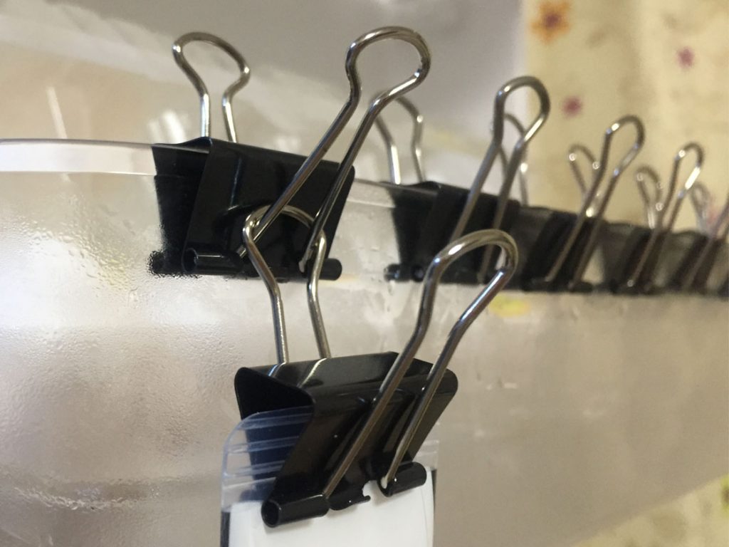でも、きっとチューブをわかりやすく収納する方法はあるはず!ネットで検索したら、ヒントになりそうな写真を見つけました。使うのはこれ:ダブルクリップ!