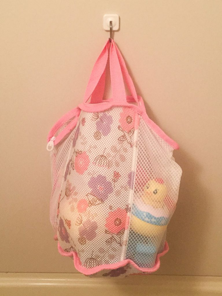 気分転換に、取っ手付きの洗濯ネットも使えたりする。(その場合は洗濯ネットが耐えれる範囲でおもちゃの重さチェックが必要かも)
