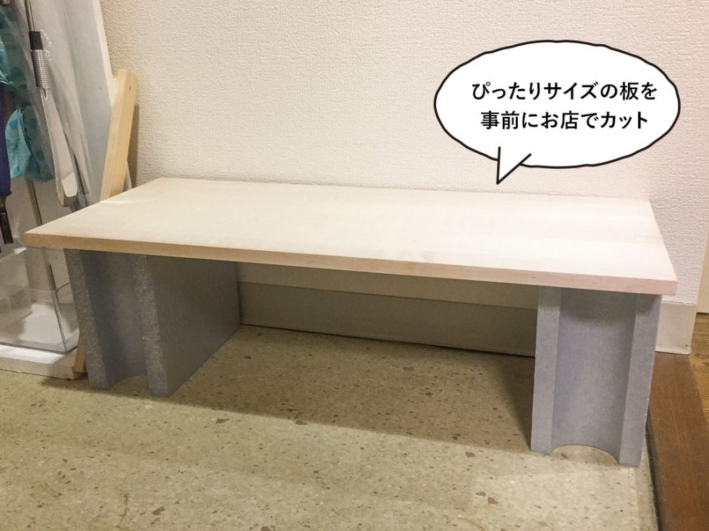 これを繰り返すだけ! スチロールブロックって、軽くて弱そうに見えるけど、娘(16㎏)が乗っても大丈夫なぐらい、強度は十分。