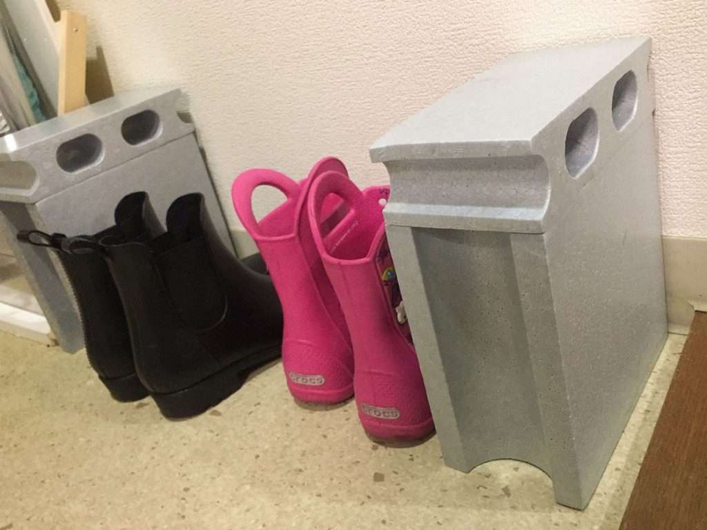 家族の靴に合うシンプルな靴棚がほしいな~でも、(いつものことだけど)手間はかけたくないな~工具不要のズボラ靴棚を作ることにしました。正確に言うと、ほぼ「置くだけ」靴棚です。使うのは、板材とスチロールのブロックです。(板材のサイズは事前にうちに合わせてお店でカットしました。)