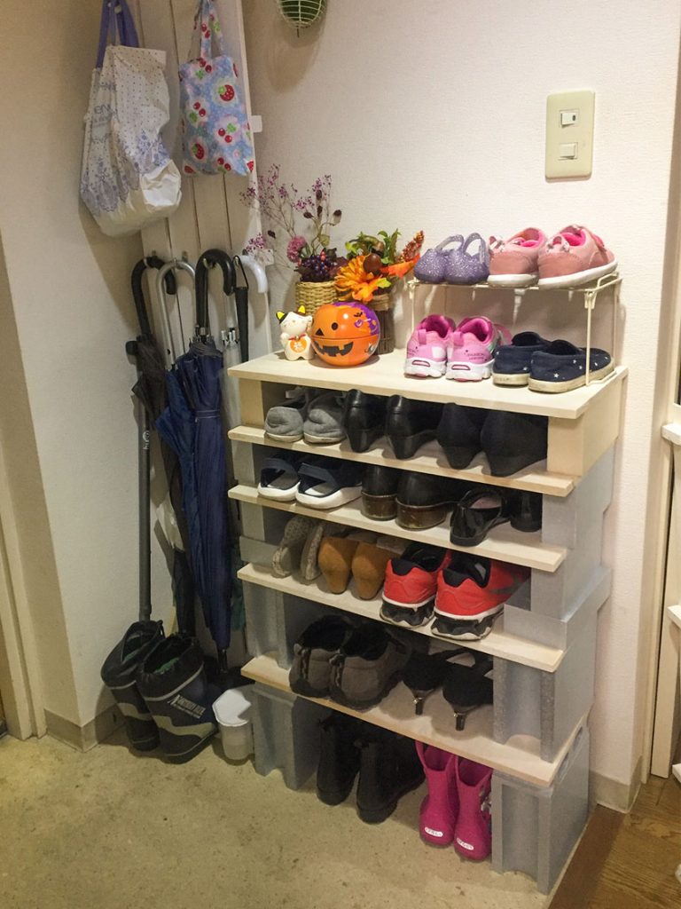 工具使わず、家族にぴったりな靴棚を完成(^^♪