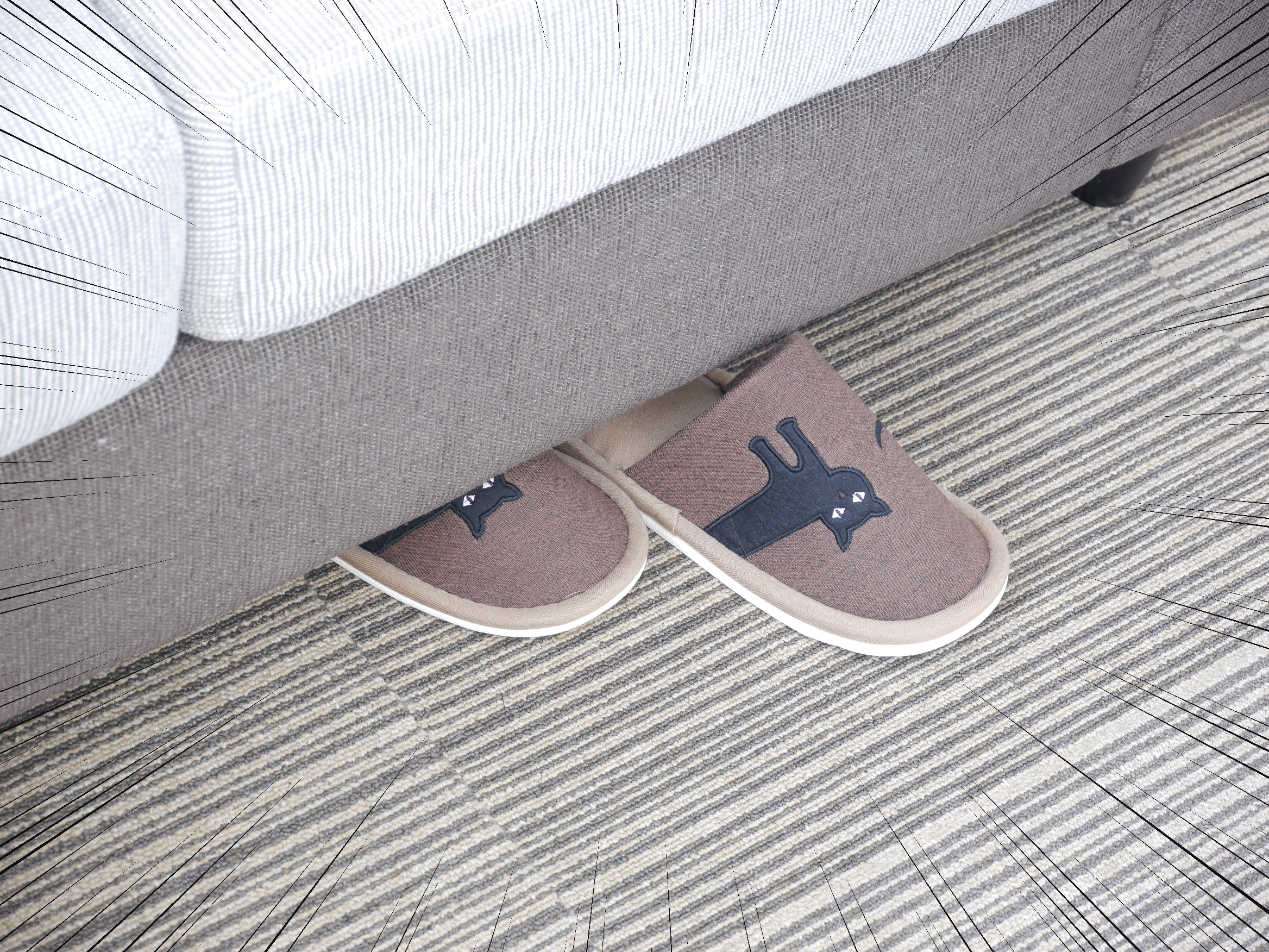 こちらはクリッとした瞳の黒猫ちゃんが愛らしい、「DCMブランド カジュアルスリッパH-17ST38」。DCMホーマック八王子店でお買い上げ。土踏まずからかかとにかけて立体型の低反発クッションが入っており、踏み込むたびに心地よさを感じるのがポイントなんですがそれ以上に!黒猫ちゃんが足元にスリスリする気分を味わえる貴重なスリッパなんです!幸せ!