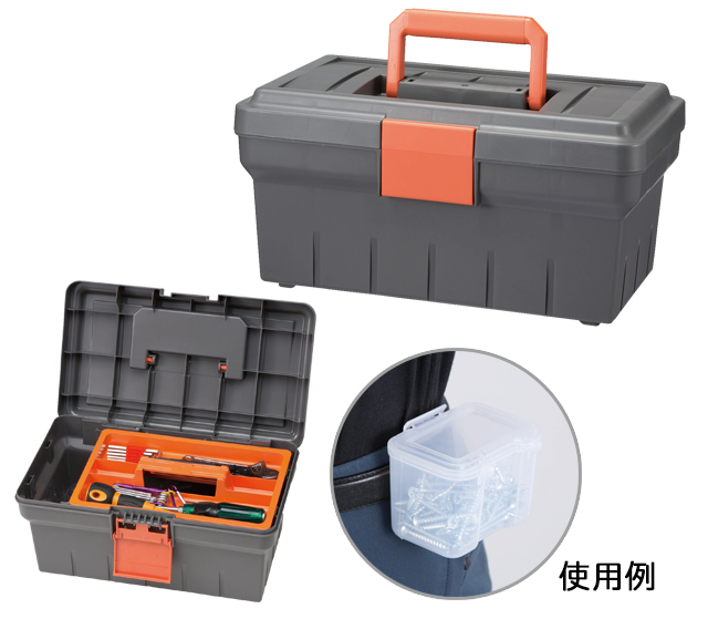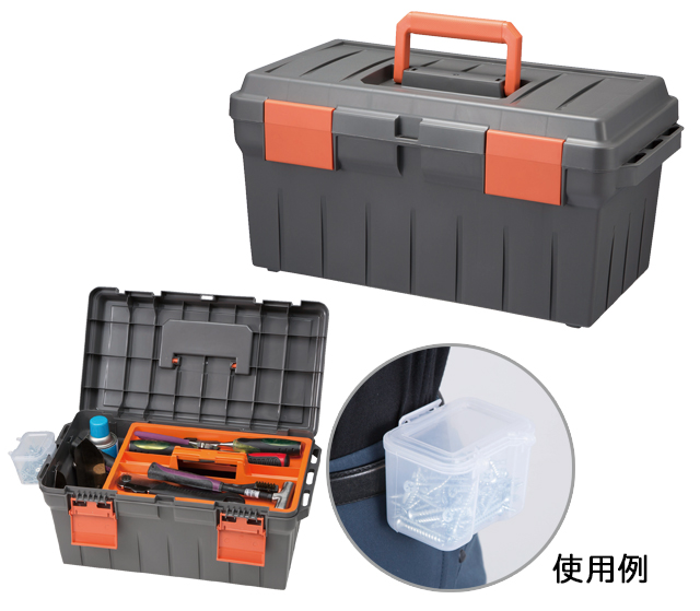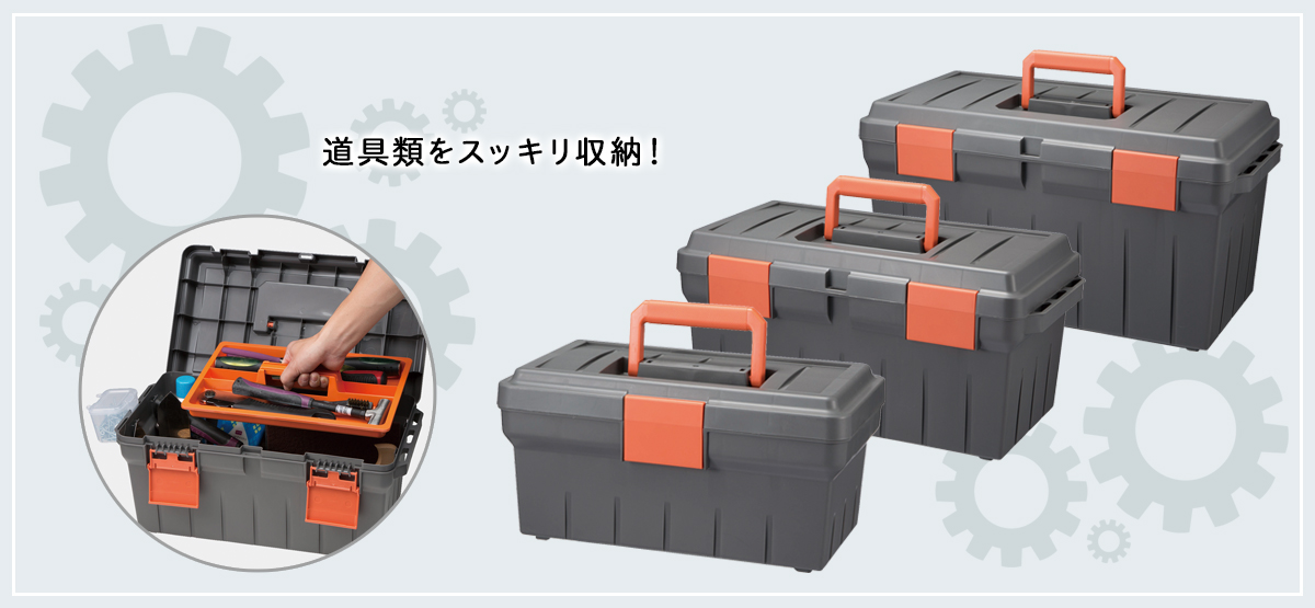 DIY用の工具、園芸用品、掃除用品などいろいろな道具類がスッキリ収まる優れたツールケースです。まさに「便利をひとまとめ」!サイズはS、M、Lの3種類です。
