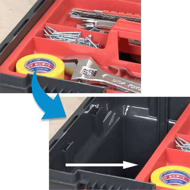 DIY用の工具やパーツなどの収納にピッタリなツールケースです。可動式トレー付きなのでトレーを片側に寄せれば高さのある物も収納可能!付属のウエストケースはベルトに取り付けることができるので、クギやネジなど小物を持ち歩けるので便利です。サイズ:約幅56×奥行き29×高さ29cm耐荷重:約20kg