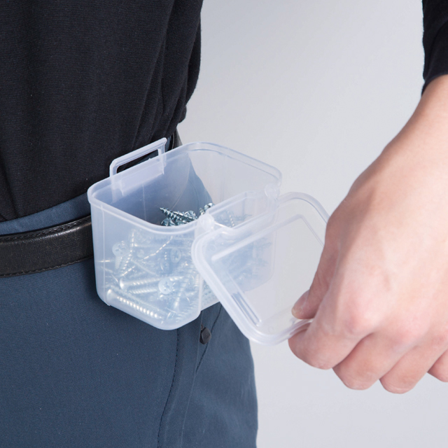 付属のウエストケースは、取り外してベルトにも付けられます。ネジや釘など細かい物の収納にピッタリ!※Sサイズは本体のサイドに取付できません。
