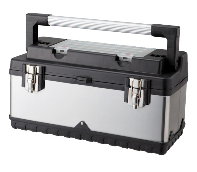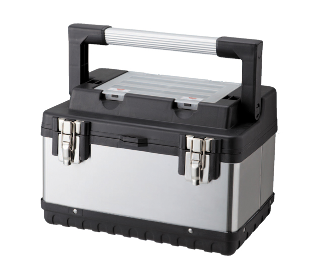 たっぷり収納できて丈夫な工具箱。ステンレス製だから丈夫で安心!小分けに便利なパーツケース付です。サイズ:(外寸)約幅50.5×奥行き23×高さ25.5cm、(内寸)約幅46.5×奥行き17.5×高さ16cm最大積載量:約15kg
