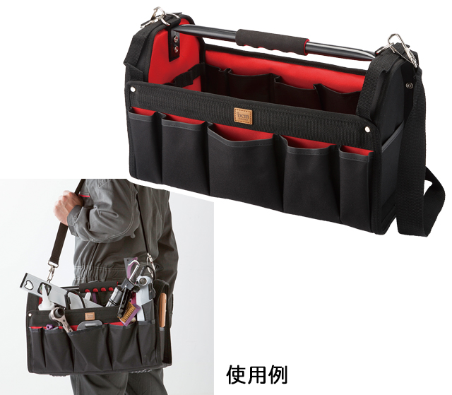 持ち運びに便利なショルダーベルト付きのツールキャリーバッグです。収納に便利なポケットが外側に10個、内側に5個付いています。サイズ:約幅42×奥行き22×高さ26cm※ご購入はDCMの店舗へお問い合わせください