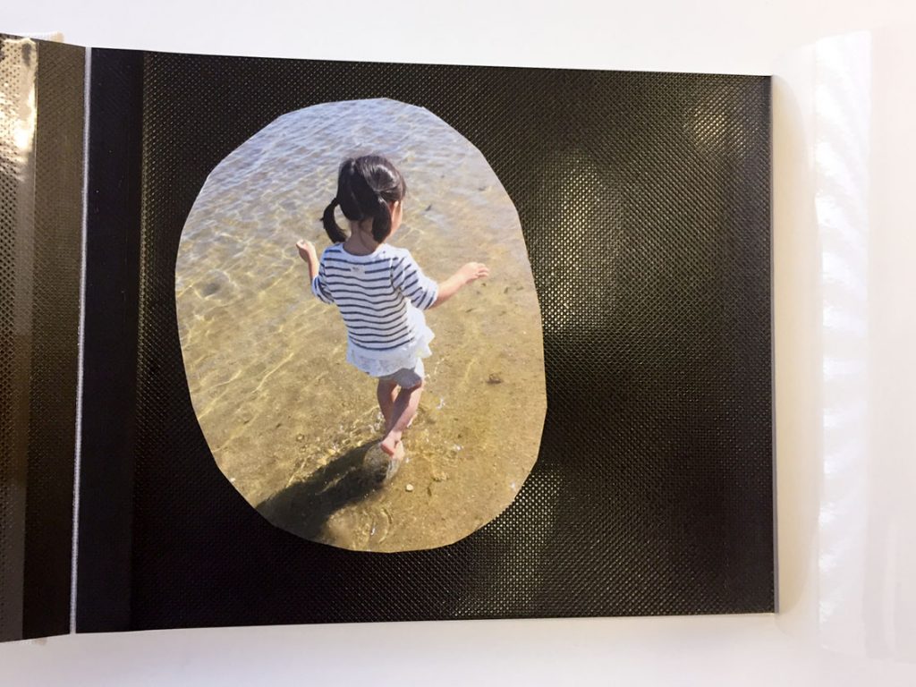 アルバムを作るから、まずは台紙選び。スケッチブックやノートを使う人もいるけど、ページ数が多いからズボラ主婦は選ばない。第一、追加の写真の印刷代がかかるから!そこで、うちのお店でも普通に売られているフリーアルバム台紙を使います。ページ数はたったの10枚!しかも、台紙はしっかりしていて、保護フィルムも頑丈。表紙もシンプルで飽きないし、長持ちしそう~