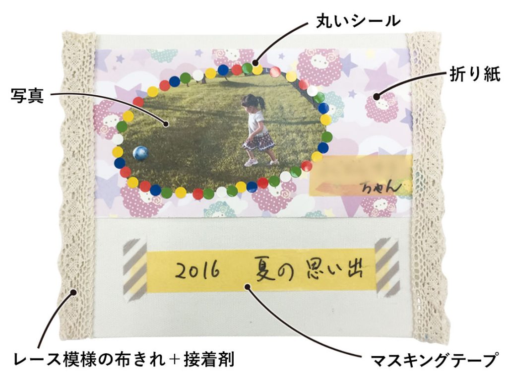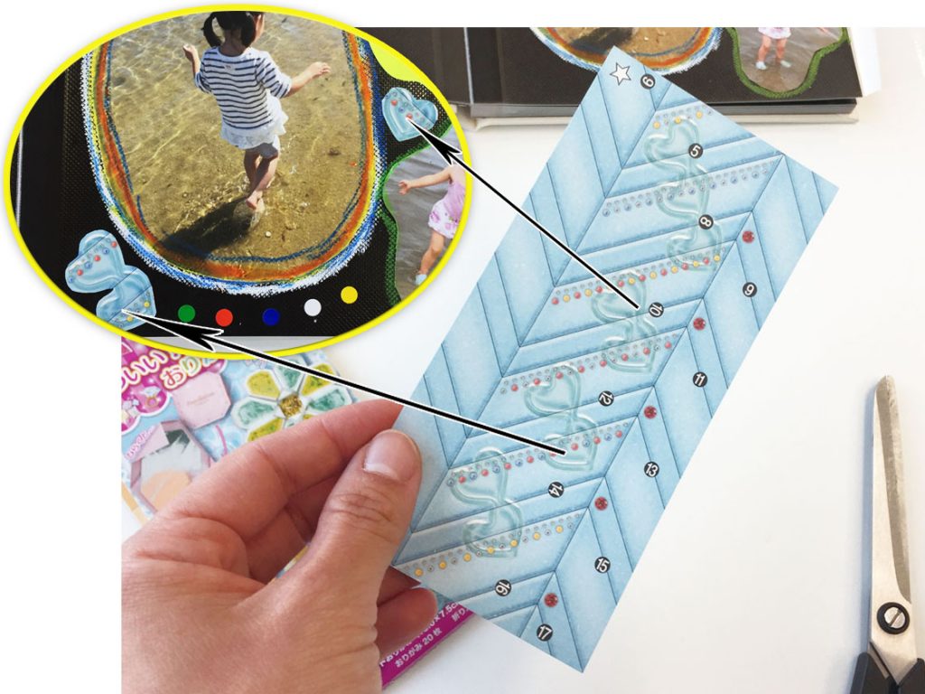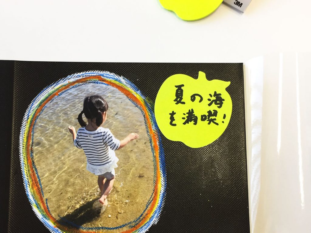 次に、テーマを決めて写真を選ぶ。夏祭りの写真が多いから、自分で撮った写真も数枚プラスし、テーマは「2016年夏の思い出」に決定!そのまま貼るとあっという間に埋まっちゃうので、写真をざっくりカットします。なんとなくシチュエーションがわかる程度で、ハサミの行くまま、本当にざっくりでOK!